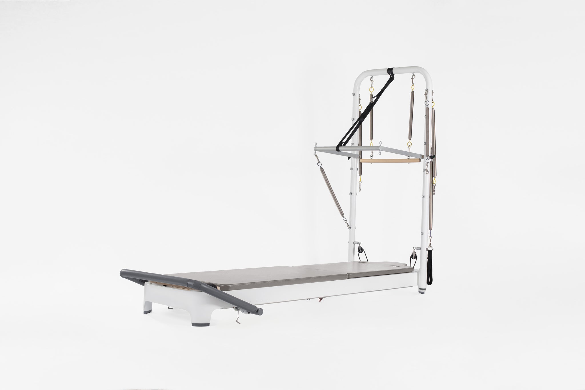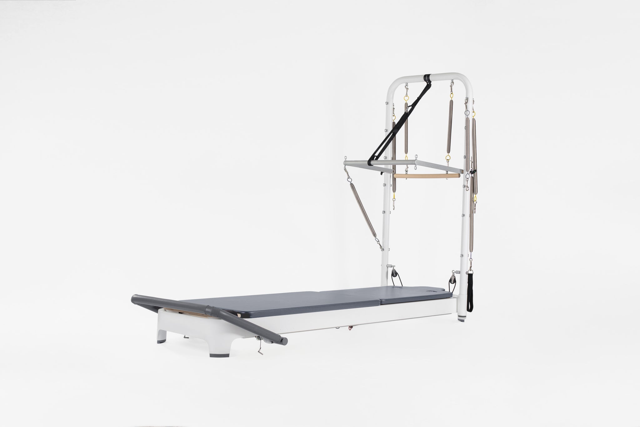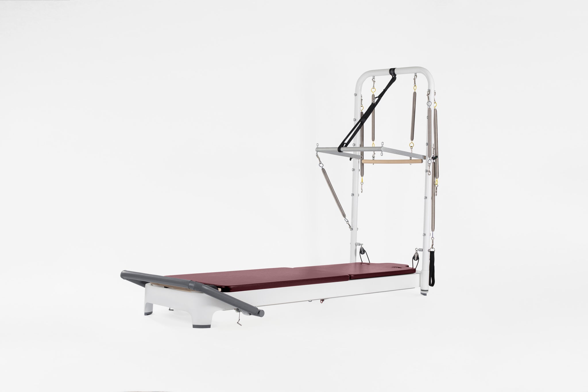 Dramatically increase your exercise repertoire, including integrated exercises using the Tower System with the moving Reformer carriage and mat workouts as well as floor exercise on either side of the Tower. Revolutionary features like the easily adjustable footbar and SoftTouch® rope system will change the way you teach Pilates. Relish in the new universe of exercise possibilities, along with smooth-as-silk transitions, even while lying on the carriage. The complete Allegro 2 Reformer with Tower and Mat System includes an Allegro 2 Reformer with 15"(37.5cm) Leg Kit, Tower and Mat Conversion. Tower/Mat Conversion are easy to remove and stored as needed.