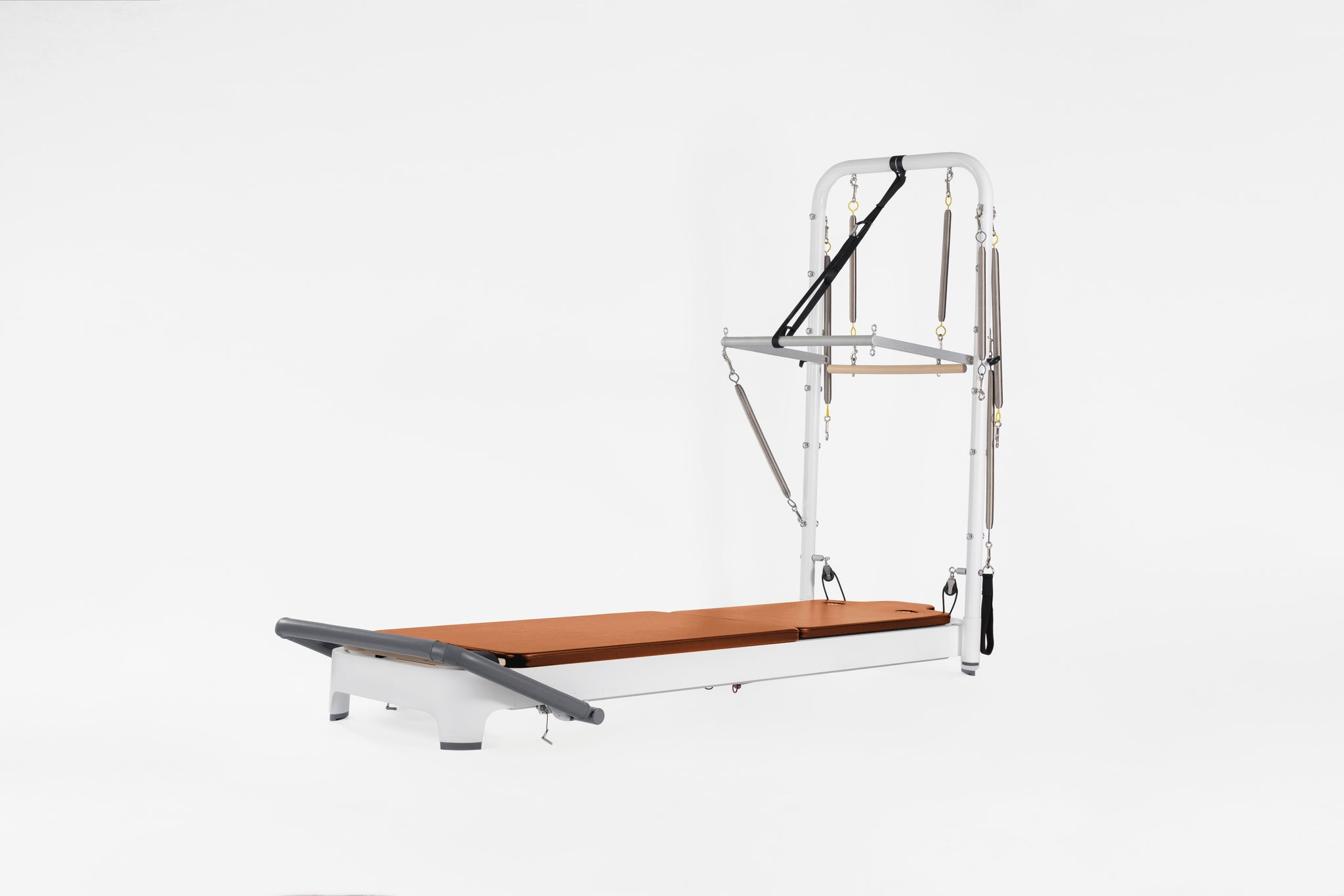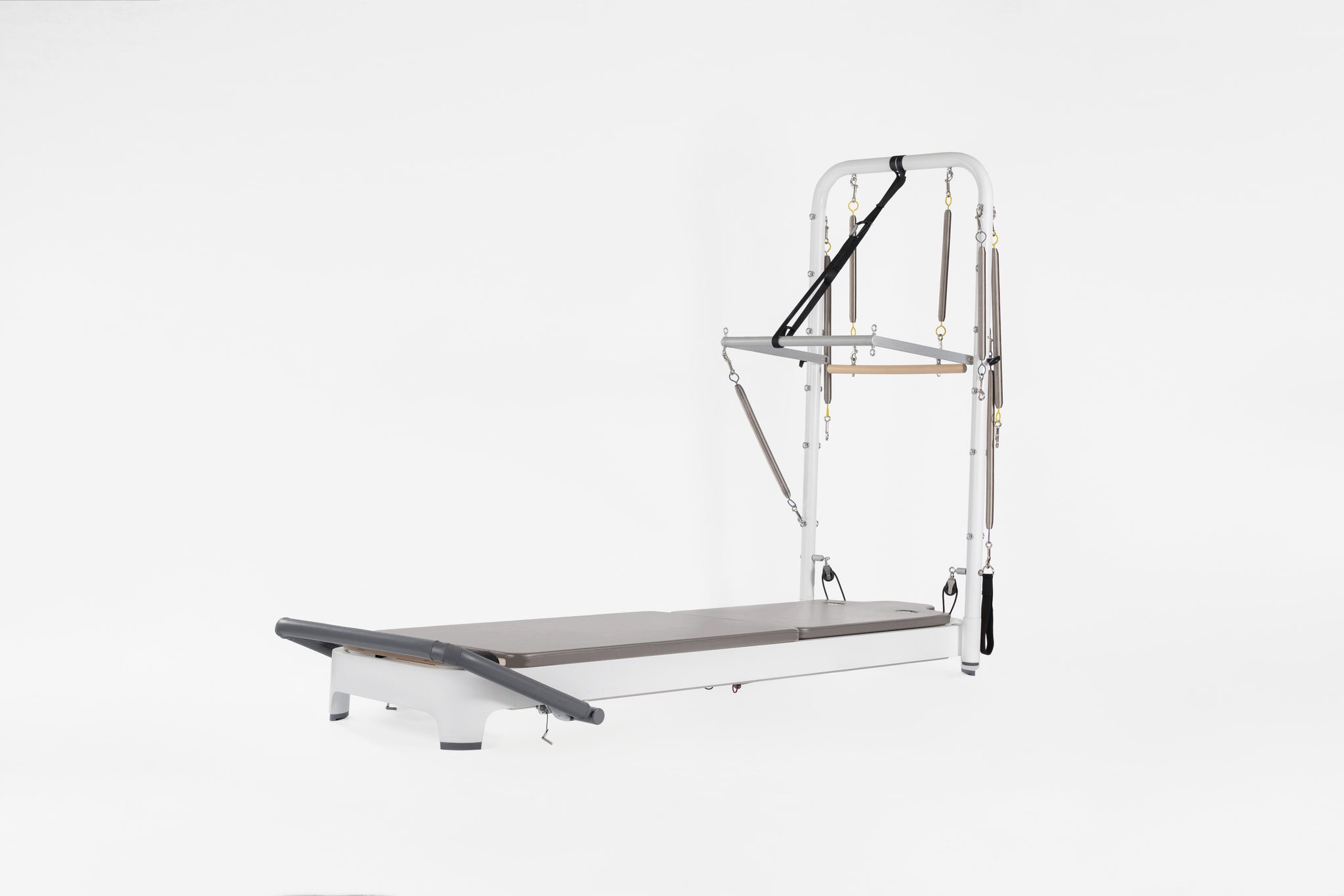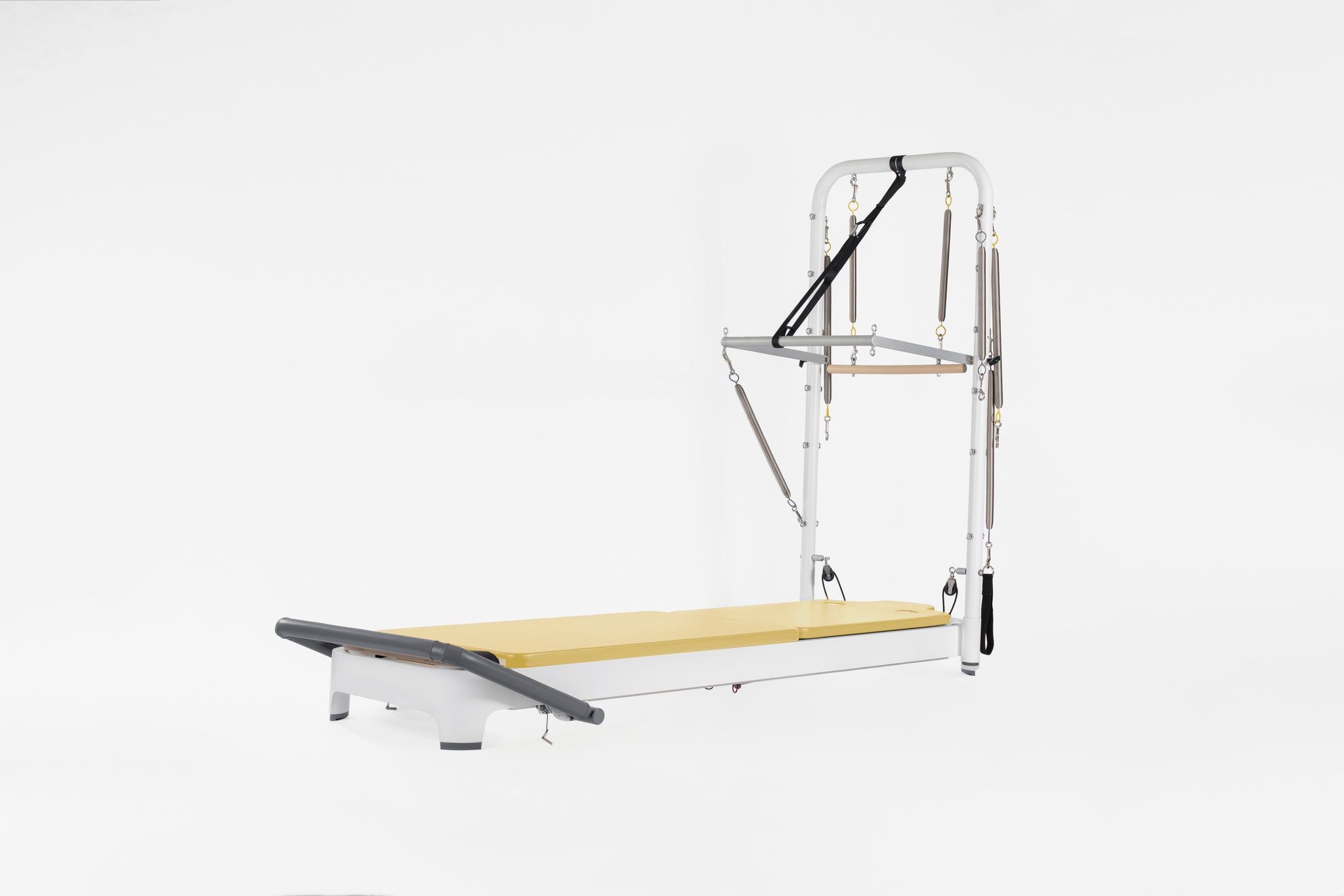 Dramatically increase your exercise repertoire, including integrated exercises using the Tower System with the moving Reformer carriage and mat workouts as well as floor exercise on either side of the Tower. Revolutionary features like the easily adjustable footbar and SoftTouch® rope system will change the way you teach Pilates. Relish in the new universe of exercise possibilities, along with smooth-as-silk transitions, even while lying on the carriage. The complete Allegro 2 Reformer with Tower and Mat System includes an Allegro 2 Reformer with 15"(37.5cm) Leg Kit, Tower and Mat Conversion. Tower/Mat Conversion are easy to remove and stored as needed.